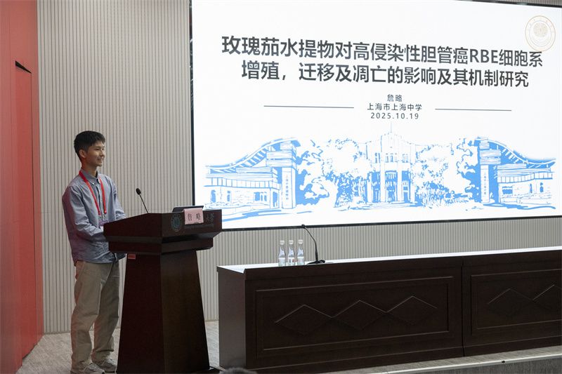 2025年10月19日上海市细胞生物学学会第十一届一次会员代表大会暨第二十届细胞生物学青年论坛在上海师范大学举行。大会设立中学生报告环节,本部学生詹略、国际部学生蒯俞畅,分别作题为《玫瑰茄水提物对高侵染性胆管癌 RBE细胞系的增殖,迁移及凋亡的影响及其机制研究》、《牛磺酸延缓细胞衰老的剂量效应研究》的研究性学习报告,反响热烈。经过现场科学家及科研工作者的公开投票,詹略同学还获颁了科研新苗奖和最佳提问奖。(蒯俞畅同学回答学者提问)...