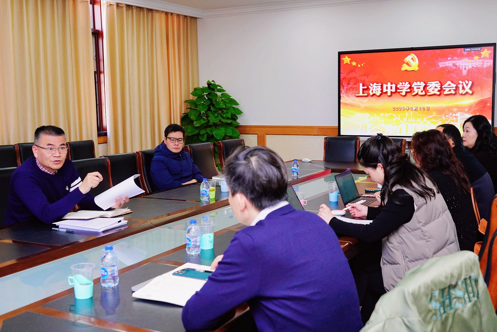 2026年3月5日上午,新时代中小学体育工作高质量发展“沪九条”及信息化相关工作落实情况专题调研会议在上海中学图书信息中心四楼举行。上海市教委副主任王浩、市教委体卫艺科处处长南少华,市科技艺术中心主任陆晔、市教师教育学院副院长卜洪晓、市教委信息化工作处调研员刘晨以及沪上“四大名校”校长、上海市教委体卫艺科处副处长时多、上海市科技艺术教育中心副主任盛炯以及“四大名校”分管体育与数智化转型的副校长等齐聚上中,...