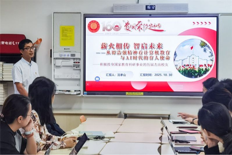 2025年10月30日,国际部第四支部全体党员齐聚先棉堂209教室,一起听取了爱国荣校宣讲团沈孝山老师的讲座——《薪火相传 智启未来——从谭浩强精神看计算机教育与AI时代的育人使命》。(沈孝山老师宣讲)沈老师首先回顾了杰出校友谭浩强教授从1952年上中毕业到创建我国计算机普及教育体系的奋斗历程,当沈老师介绍《C程序设计》累计发行逾1400万册的数据时,全体党员深刻感受到谭教授对我国计算机教育的巨大贡献。随后沈老师着重介绍了谭浩强教授把“...