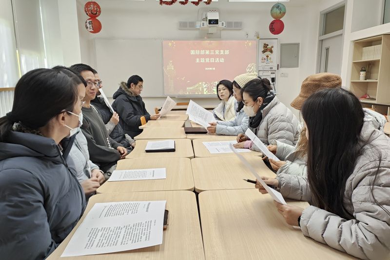 1月22日,国际部第三支部近日组织全体党员教师,以小组形式专题学习《习近平谈治国理政》第五卷第一讲中“新征程是充满光荣和梦想的远征”相关章节,结合国际教育工作实际交流感悟,将理论精神转化为育人实效。学习研讨中,老师们立足不同岗位谈体会、谋落实。学科教师们纷纷表示,要将家国情怀与国际视野融入教学,于海峰、马凯成等教师提出,在物理、科学教学中融入中国航天、传统科技智慧等案例,以学科为载体讲好中国故事;陈琛老师以“...