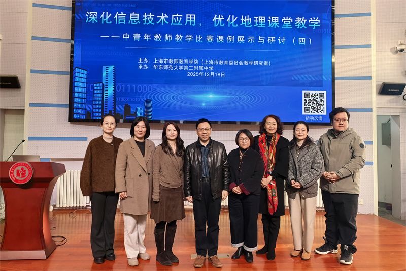 为深化双新推进,辐射2024年上海市中青年教师地理教学评比的成果,2025年12月18在华东师范大学第二附属中学二楼报告厅举办 “深化信息技术应用,优化地理课堂教学”中青年教师教学比赛课例展示与研讨。本部地理教师陈敏老师和华东师范大学第二附属中学潘捷老师获2024年上海市基础教育中青年教师教学比赛一等奖,因此两位老师都在此次活动中进行了课例展示。上海中学地理教研组正高级教师王莺、教研组长刘峰等教师到场参与了活动。陈老师以《...