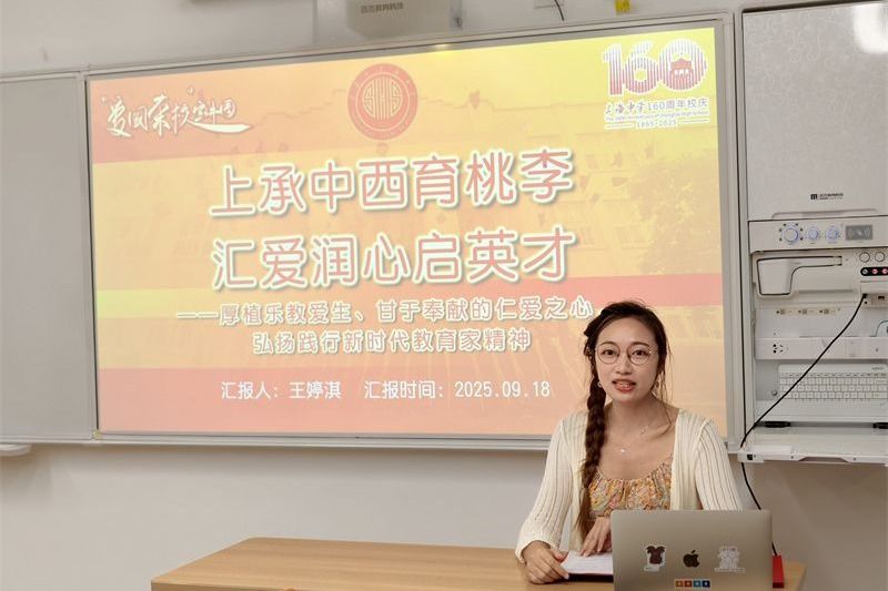 9月18日,国际部第三支部主题党日上,爱国荣校宣讲员王婷淇老师带来以《上承中西育桃李、汇爱润心启英才》为题的主题宣讲,在她图文并茂的分享中,她声情并茂地讲述了上汇实验党支部及党员老师们如何以一厚植乐教爱生、甘于奉献的仁爱之心弘扬践行新时代教育家精神。宣讲中,王老师结合学校 “小龙人育人图谱”,生动讲解 “小教室连大世界”“小走廊连大科技” 等育人理念。她以自身设计的《两位数加减整十数》课程为例,分享如何将环保教育融入数学教学,...