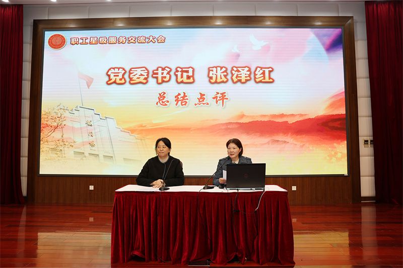2025年12月5日15:20,上海中学职工星级服务交流大会在先棉堂辅楼报告厅举行,申报三星升四星、四星升五星的职工依次登台汇报,党委书记张泽红作总结点评,为学校星级服务工作提质增效指明方向,星级主管领导及全体职工出席,国际部初小段事务中心主任罗华主持。(国际部初小段事务中心主任罗华主持)大会现场,来自国际部接待、财务、资产、总务、驾驶、实验、医务室、电视台、电工、教务、事务办等多个岗位的职工,按申报等级有序发言。...