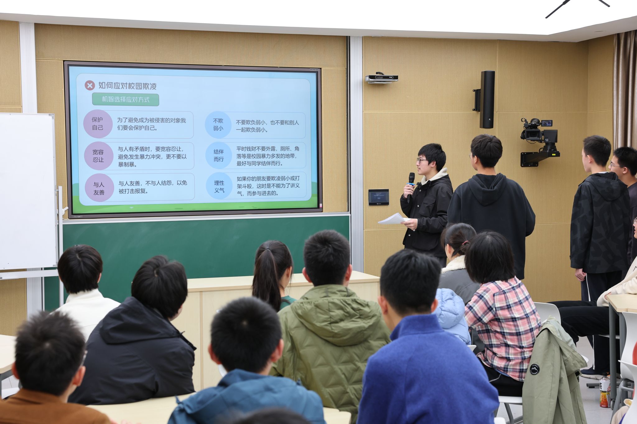 为切实筑牢校园安全防线,培育学生尊重包容的良好品格,营造友善和谐的班级氛围,2025年11月28日下午,上海中学陆续开展了形式多样、内涵丰富的防欺凌主题班会。各班级结合自身特点精准设计活动方案,从认知普及、情感共鸣到行为指导层层深入,让反欺凌理念深植每位学生心中。本次系列班会打破“统一说教”模式,各个班级各展特色,形成“一班一策、精准育人”的生动格局。高一1班以学生自编自演的语言欺凌和行为欺凌情景剧为切入点,...