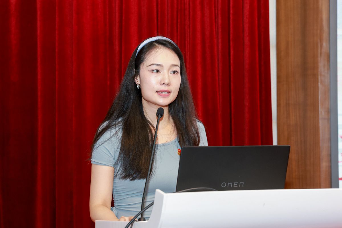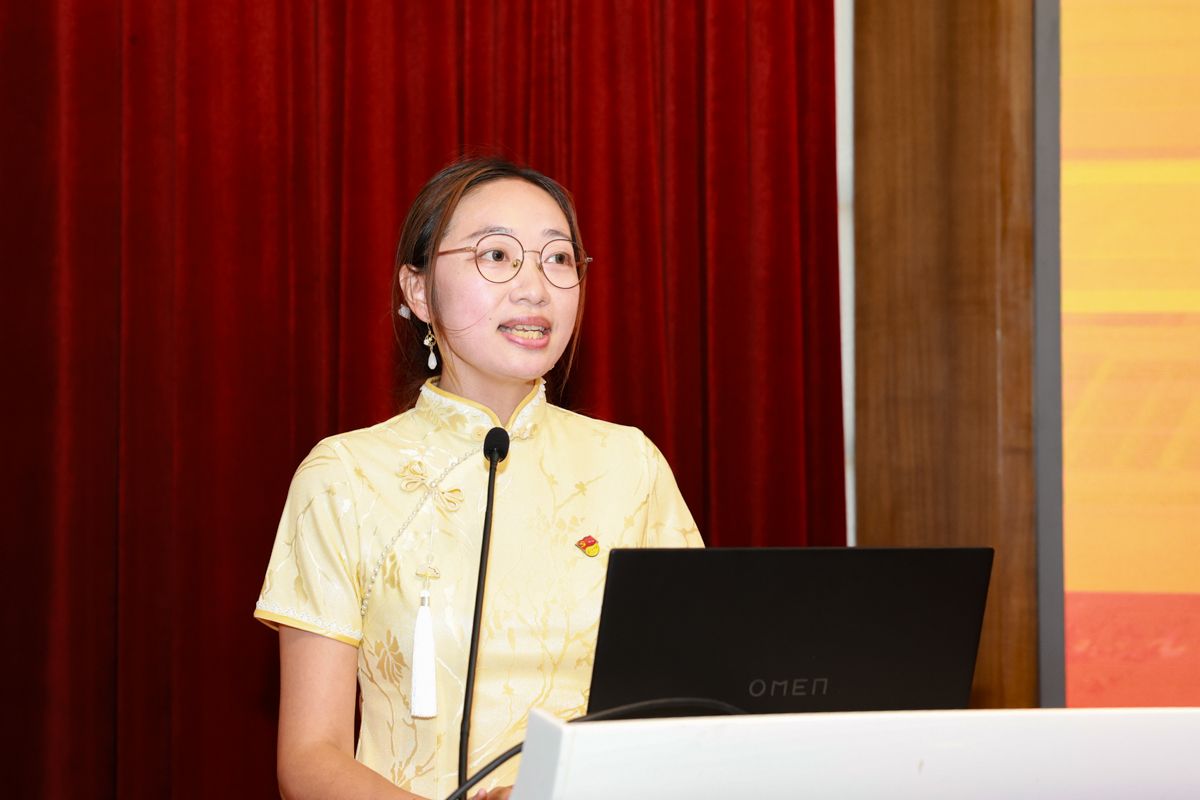 (“爱国荣校”教师宣讲员代表、上汇支部王婷淇发言)