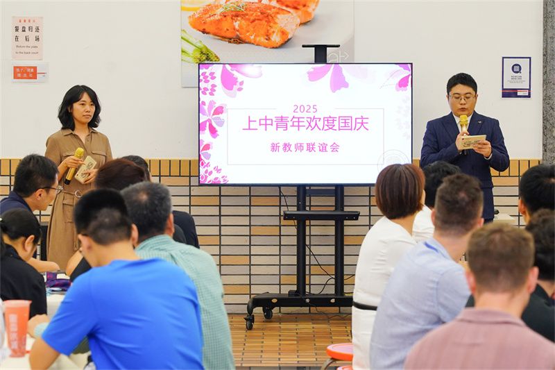 为庆祝中华人民共和国成立,进一步增强青年教师团队的凝聚力与归属感,帮助新入职教师快速融入校园大家庭,近日,上海中学青年教工团精心策划的 “上中青年欢度国庆 新教师联谊会” 在索迪斯食堂温馨启幕。全体新教师齐聚一堂,以轻松愉悦的互动与欢声笑语,共庆佳节、共话成长。