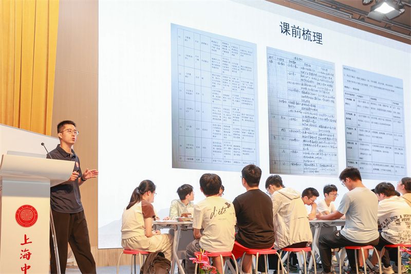 活动伊始,上海中学两位教师先后展示精彩课堂。徐承志老师以选择性必修下册古代散文为内容,开设单元梳理课,从写作时代、文体类型、思想主题三维度切入,引导学生把握文本共性,体悟传统文化观念;俞诸亮老师则聚焦必修上册《学写文学短评》,通过“关联”策略指导,帮助学生掌握“叙议结合”的写作技巧,深化评论表达。