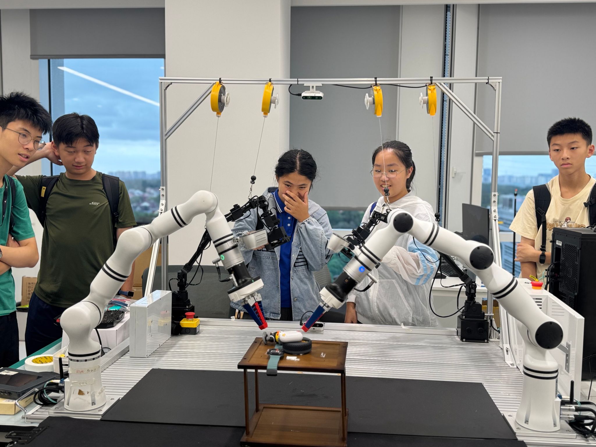 2025年10月16日,我校新高一专门课人工智能方向的同学们怀着对前沿科技的好奇与向往,走进同济大学自主智能无人系统科学中心,开展了一场别开生面的研学实践活动。在中心两位教授的亲自引领下,同学们深度探访了正在研发中的自主智能无人系统与先进机器人技术,切身感受了科研创新的魅力。
