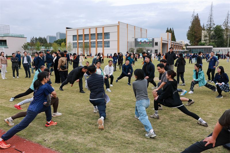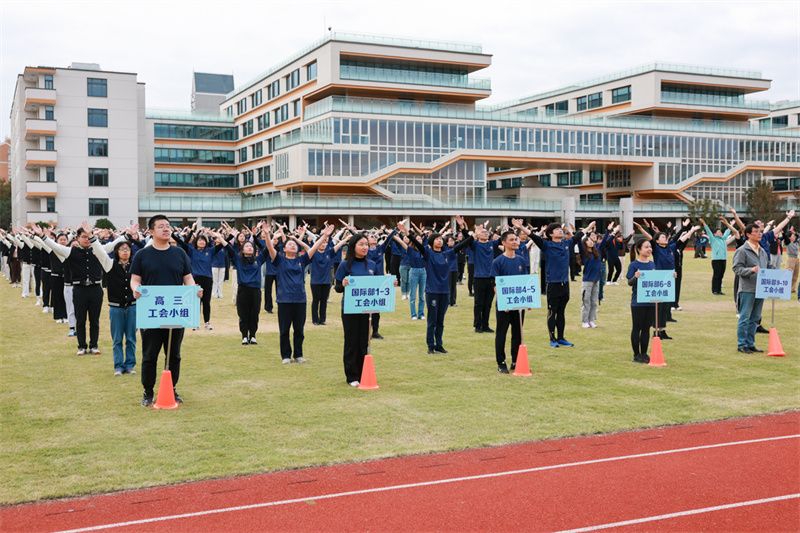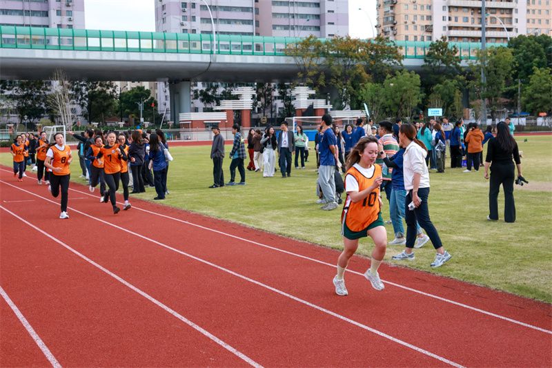 2025学年教职工运动会于10月31日下午在大操场举行。本次活动由上海中学工会主办、体育组承办,全体教职工参与。七个集体趣味项目、三项个人田径赛及一场教工足球友谊赛依次开展,赛程紧凑、欢笑不断。特别值得一提的是,来自鄂尔多斯的校长、书记一行也到场参与,与上中教师同场竞技、切磋配合,为赛场再添一抹亮色。