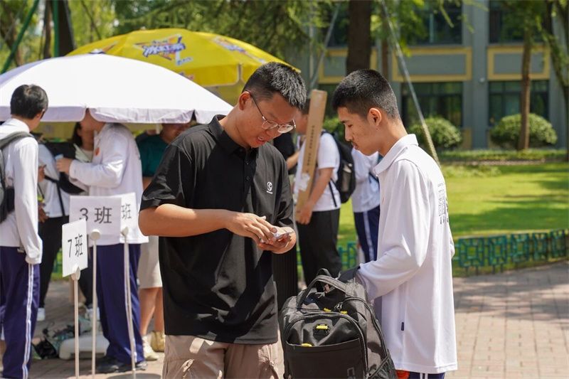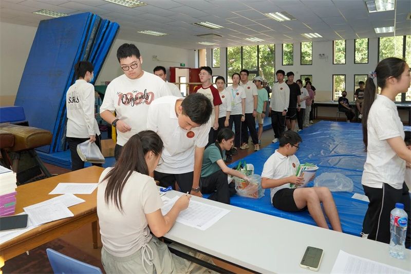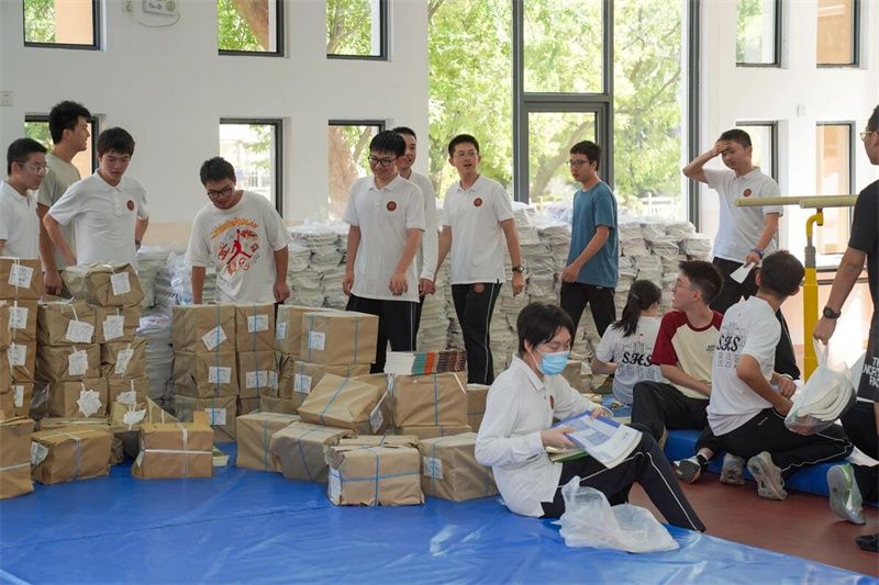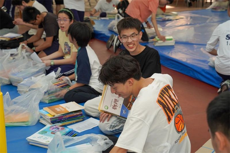 新学期伊始,学校后勤与教务部门提前在体育馆设立了临时教材发放点,在老师与志愿者学生的组织下,学生排队领取新学期教材,现场秩序井然。