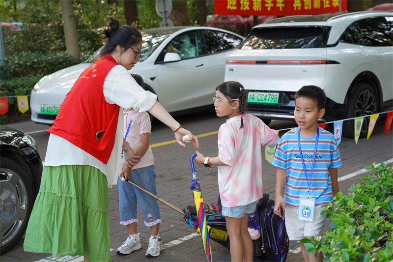龙门楼前家长伴送,各年级依次入校,各班班主任亲切地迎接学生的到来,并有序组织学生报到,向每一位学生送上问候与新学期祝福。