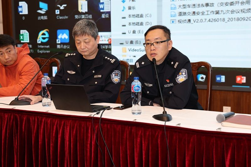 (周副队长分析事故因素并提醒校车驾驶员规避大车事故)