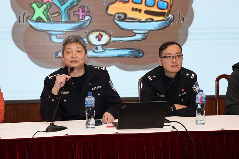 徐汇交警支队车宣科的周副队长、孙警官为我校校车驾驶员、管理员开展了交通安全培训。首先,孙警官对近期对本区内校车检查中发现的问题进行了提醒,比如安全捶警报电池没电、医药箱药品不足、灭火器压力不符合使用要求等等。要求所有校车司机要经常自查,发现问题及时和公司沟通解决。随后周副队长播放了上半年度本区内重大交通亡人事故的视频,通过这些视频生动展示了车祸发生过程并客观角度分析事故发生的主要因素, 尤其在大车事故时,提醒校车驾驶员应注意的事项才能避免事故发生。大家从一声声惊呼中意识到安全行车的重要性。