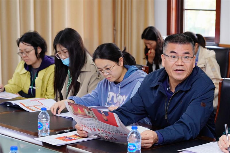 会议伊始,刘炼老师带领全体中心组成员集中学习中共二十届四中全会精神及《中共中央关于制定国民经济和社会发展第十五个五年规划的建议》核心内容。学习过程中,刘炼老师特别邀请党委副书记刘茂祥带领大家深入研读全会关于教育强国、科技强国、人才强国建设的部署要求,重点解读了“十五五”时期作为基本实现社会主义现代化关键阶段的战略定位,以及2035年人均国民生产总值达到中等发达国家水平的宏伟蓝图,引导与会人员深刻把握高质量发展、科技自立自强的核心要义。