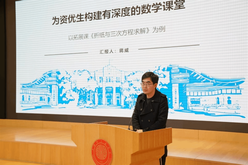 蒋威老师分享了 “折纸与三次方程的求解” 特色课程,通过 Lill 方法与折纸公理的应用,将抽象的三次方程求解转化为几何探究活动,83% 的学生能独立完成从方程构建到实体折叠的全过程,彰显了课程的探究价值。