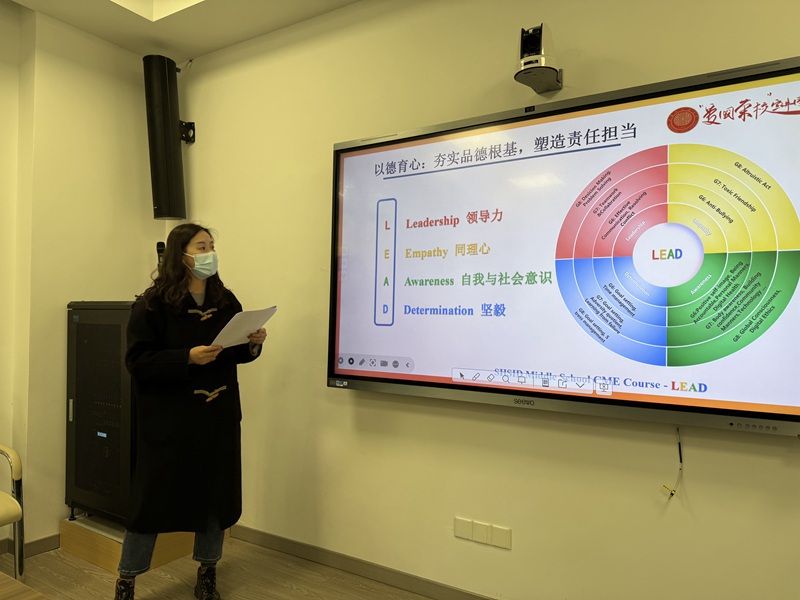 同一时间,第二学段党小组以聆听了上海中学国际部刘香老师《以文化人,以德育心——培养负责任的世界公民》的主题汇报。“以文化人”方面,通过文化周、汉服游园、父辈采访等活动,助学生传承文化、增强认同;“以德育心”方面,依托LEAD课程(领导力、同理心等),按六至八年级特点分层设计目标管理、逆商培养等内容,结合编织捐赠、山区支教等服务学习培育责任。党员老师们再次领悟了教育的本质是“点燃火焰”。