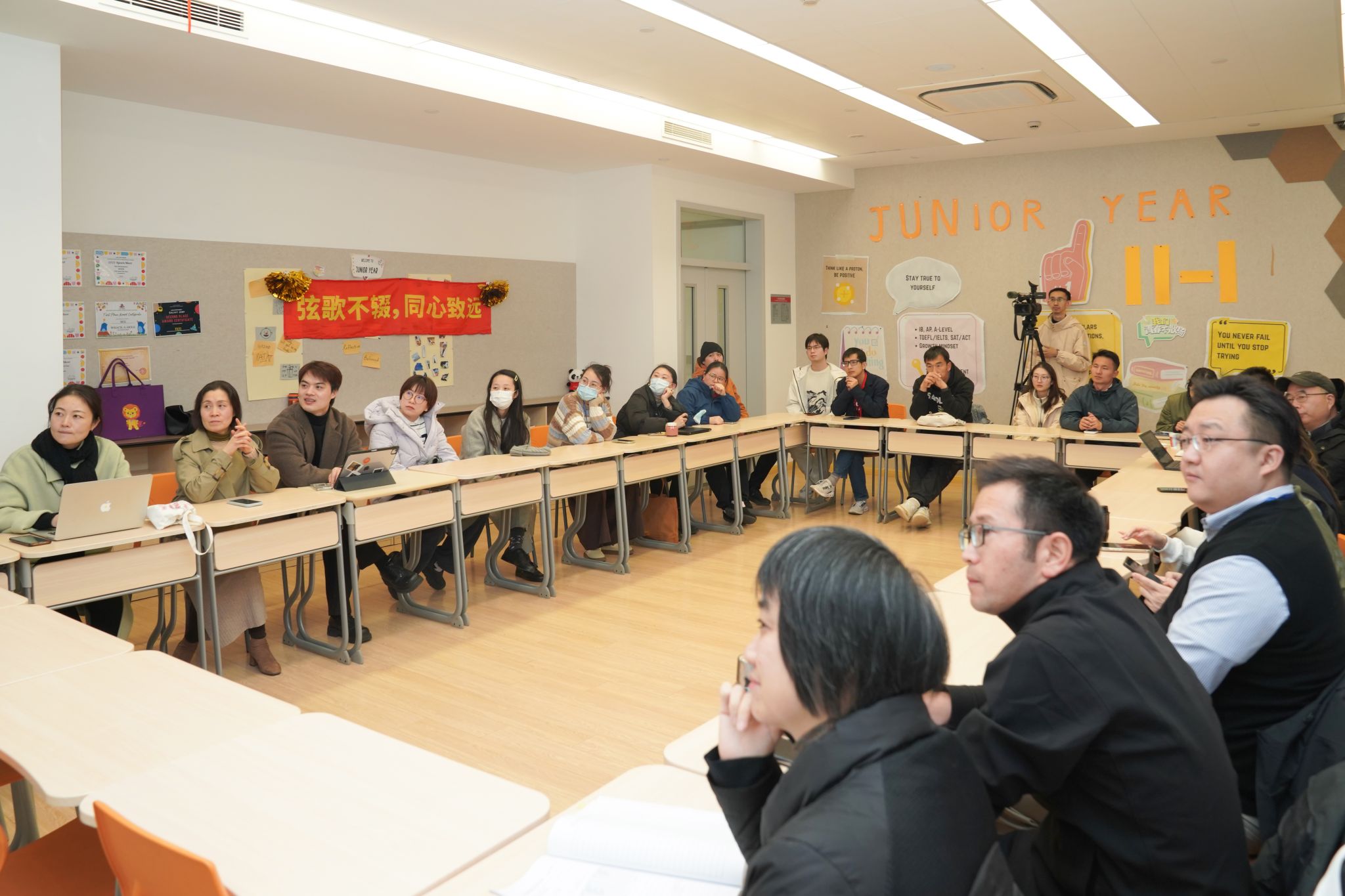 国际部第一支部刘香老师以“以文化人,以德育心——培养负责任的世界公民”为主题,分享国际部初中段汉语学科育人实践。她指出,中文是传承中华文明的重要载体,学科团队通过文化周、文化月等系列活动,将中华优秀传统文化融入日常教学,引导学生沉浸式体验文化魅力。通过中华文化体验、探访父辈足迹等活动实现“以文化人”,增强学生文化认同;在“以德育心”方面,构建CME课程LEAD体系,围绕14个主题、24个单元设计成长路径,针对不同年级学生开展领导力、同理心、自我与社会意识及坚毅能力的培养,夯实品德根基,塑造责任担当。