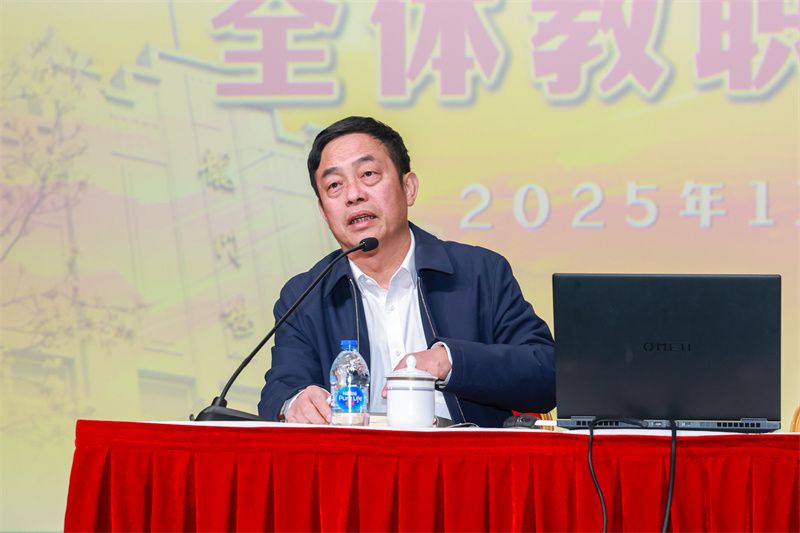 随后,党委副书记樊新强在教职工大会上复盘上半学期教学工作,聚焦课堂教学与考试评价两大核心,作《让课堂和评价推动学生生命成长》发言。课堂教学方面,本部开设市区级公开课11节,国际部高中段开展“高立意+高互动”公开课周、初小段推进23节公开课,结合不同学段学情打造特色课堂,倡导教师以“上好每一堂课”为终身追求。考试评价环节,国际部针对4600余种课程组合优化考试时段安排,命题工作凸显素养导向,鼓励原创题开发,本部数学组以系统性命题研讨成为学科标杆。此外,学校积极推进AI赋能教学,国际部初小段嵌入AI教学场景20余项,本部组织近30场 AI 教学研讨,依托智慧校园与实验室升级强化硬件支撑,始终以“爱”为核心助力学生生命成长。
