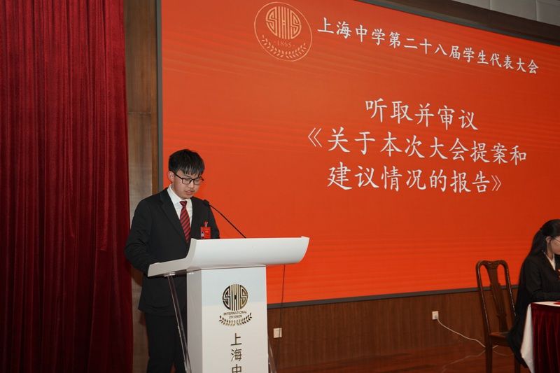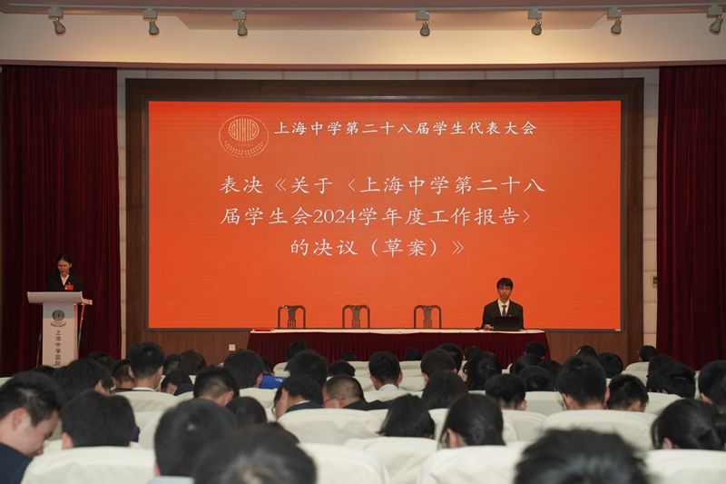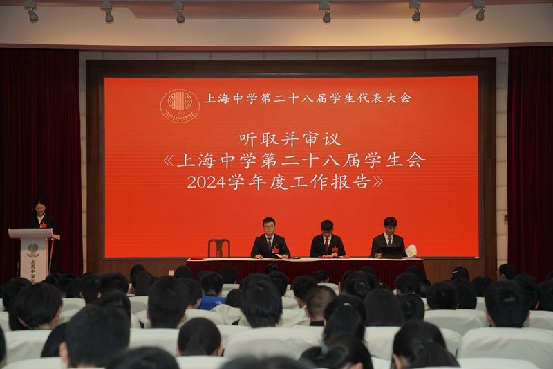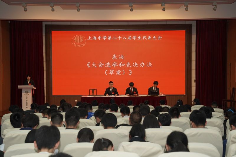 2025年12月4日,上海市上海中学第二十八届学生代表大会第二次会议在先棉堂礼堂举行。校党委书记张泽红、党委副书记樊新强、刘茂祥、德育处副主任兼本部第一支部书记吴静怡、德育处副主任兼高二年级组组长刘育琦、德育处轮岗主任张琼由、高一年级组组长兼本部第二支部书记张甲、高三年级组组长胡居魁、本部第三支部书记徐承志、校团委书记杨崝源、学生会指导老师牛子杰出席会议。