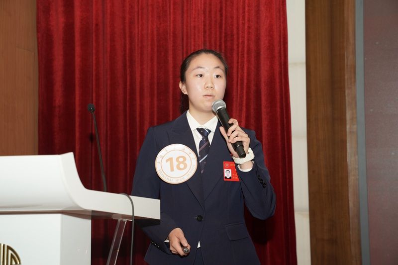 随后,高一23名候选人通过个性鲜明的展示参与学生会委员的角逐,他们用充满感染力的竞选演讲,幽默风趣的表演给在场的老师和代表留下了深刻的印象。