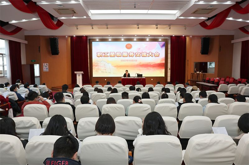 2025年12月5日15:20,上海中学职工星级服务交流大会在先棉堂辅楼报告厅举行,申报三星升四星、四星升五星的职工依次登台汇报,党委书记张泽红作总结点评,为学校星级服务工作提质增效指明方向,星级主管领导及全体职工出席,国际部初小段事务中心主任罗华主持。