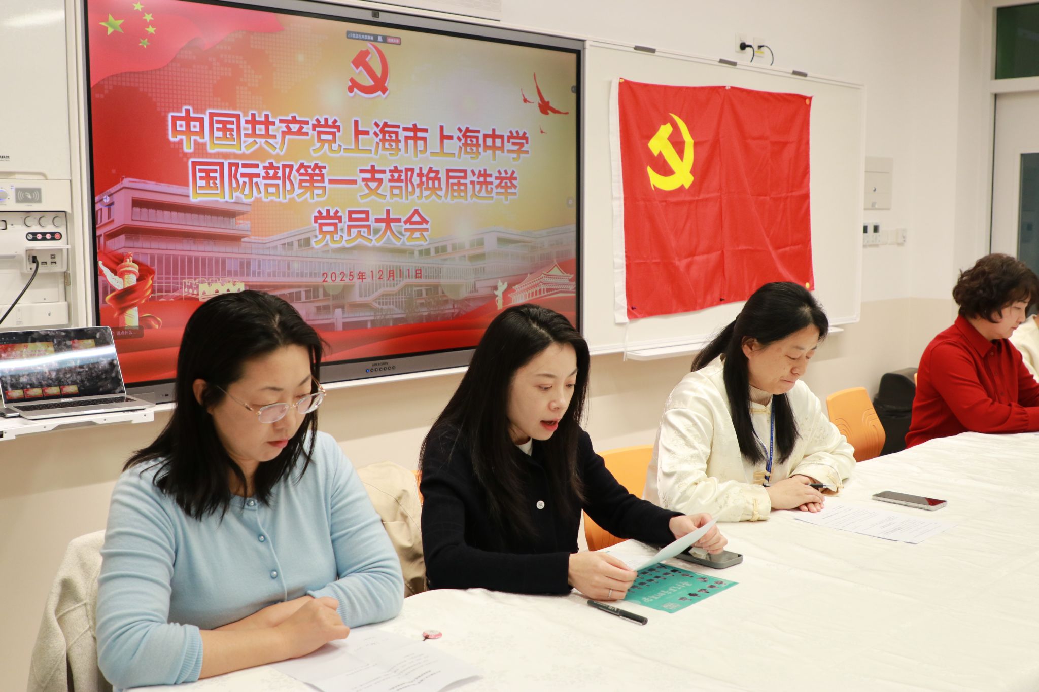 2025年12月11日下午,上海中学国际部第一党支部换届选举党员大会在庄严的国歌声中开始。