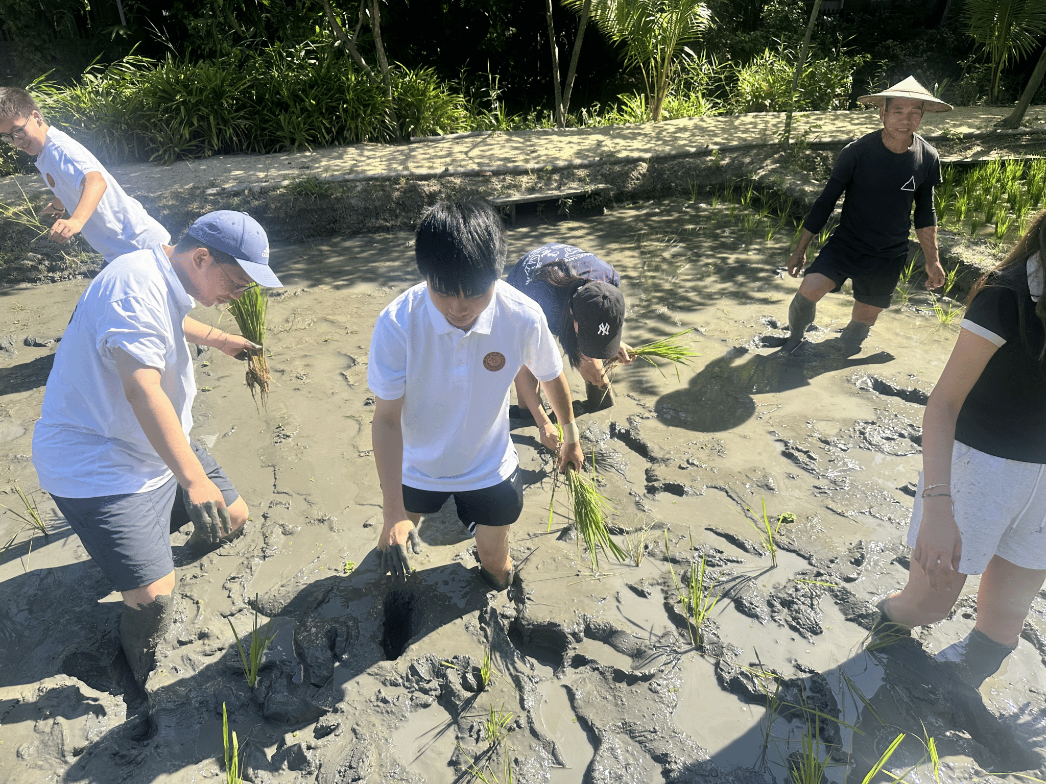 值得一提的是,本次交流过程中,MWIT还特别带领前往上中学子前往了Rose Garden,参与泰国传统农业体验,同学们卷起裤腿,深入泥地,亲手将水稻种入途中,大家得以触摸泰国文化的乡土根基,感悟其悠久文明与可持续发展智慧。