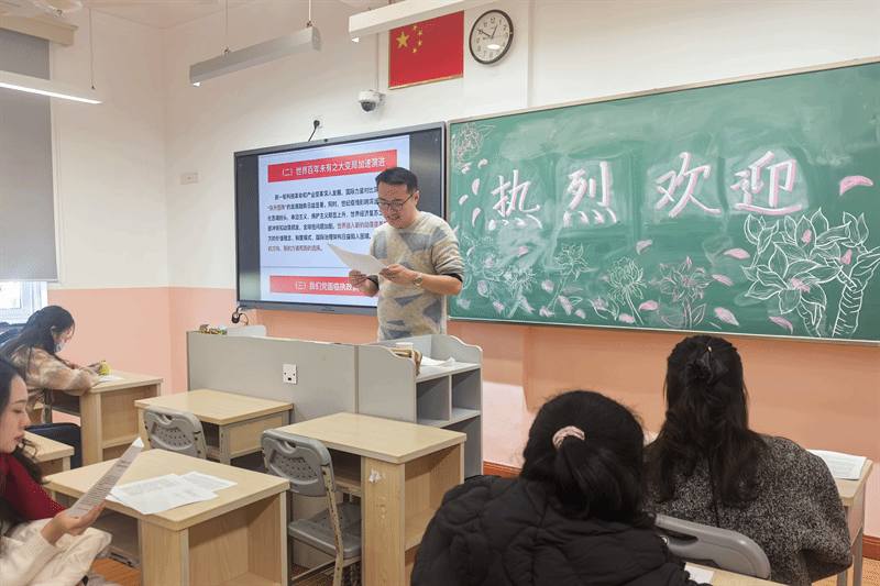 支部书记张甲老师带领支部老师们学习《发展新质生产力是推动高质量发展的内在要求和重要着力点》。张老师指出,新时代以来,党中央作出一系列重大决策部署,推动高质量发展成为全党全社会的共识和自觉行动,高质量发展成为主旋律。什么是新质生产力?新质生产力是创新起主导作用,摆脱传统经济增长方式、生产力发展路径,具有高科技、高效能、高质量特征,符合新发展理念的先进生产力质态。如何发展新质生产力?第一,大力推进科技创新。第二,以科技创新推动产业创新。第三,着力推进发展方式创新。第四,扎实推进体制机制创新。第五,深化人才工作 机制创新。张老师进一步结合时事热点和生活实际举例分析。近期,“美国斩杀线”引起社会广泛关注。“斩杀线”原是形容游戏中角色完全没有“回血”余地的词汇,被引申用以描绘美国普通人的生存状态,指很多美国人一旦遭遇意外、疾病或是失业等变故,他们的财务状况就将跌破某个临界值,被高额生活成本与债务压垮,美国社会会用一连串机制“迫使”其流落街头。与此形成鲜明对比的是,中国并没有所谓的“斩杀线”。即使普通人失去创造经济价值的能力,社会依然会为他们提供帮助,确保他们能够稳定地生活。例如,针对贫困人群有精准扶贫和最低生活保障。美国斩杀线引发的热议,让老师们深刻感受到资本逻辑下的残酷真相,也让大家更加珍惜中国的民生温度。