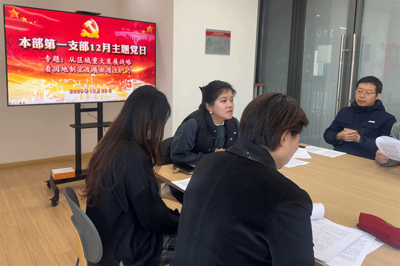 12月25日中午,本部第一支部在甄陶楼319会议室开展主题党日活动,围绕“从区域重大发展战略看因地制宜发展新质生产力”主题展开深入学习研讨。