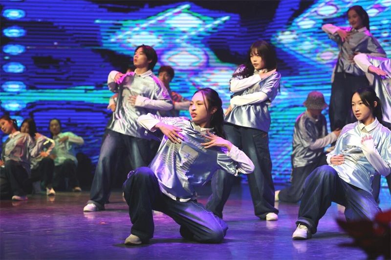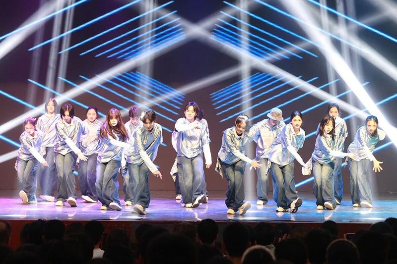 随后,高二(12)班、国际部SPDC街舞社及本部街舞社联手带来组舞串烧,《Swige》、《DEBUT》、《街舞社群街》。三个篇章接续上演,动感节拍尽显青春力量与舞蹈之美。