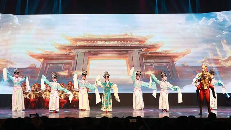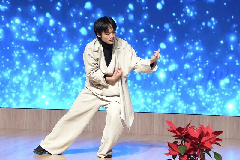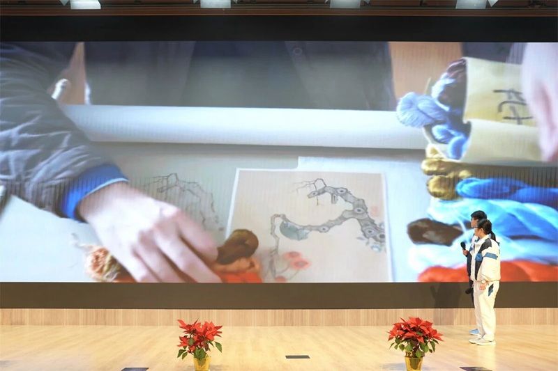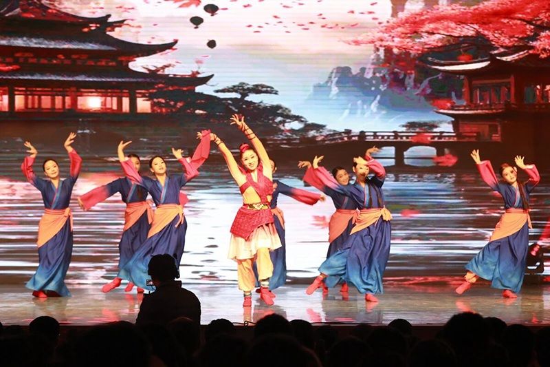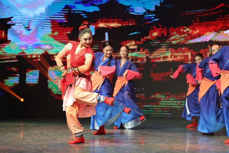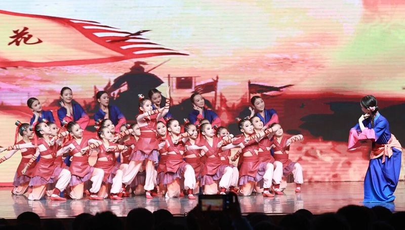 本部龙门舞社的高中生们携手22位国际部少儿舞蹈团的“小花木兰”演绎古典舞《花木兰》,舞者们招式铿锵,既淋漓尽致地展现了“谁说女子不如男”的巾帼气魄,也传递出本部与国际部“大手拉小手”的融合温情与成长接力。