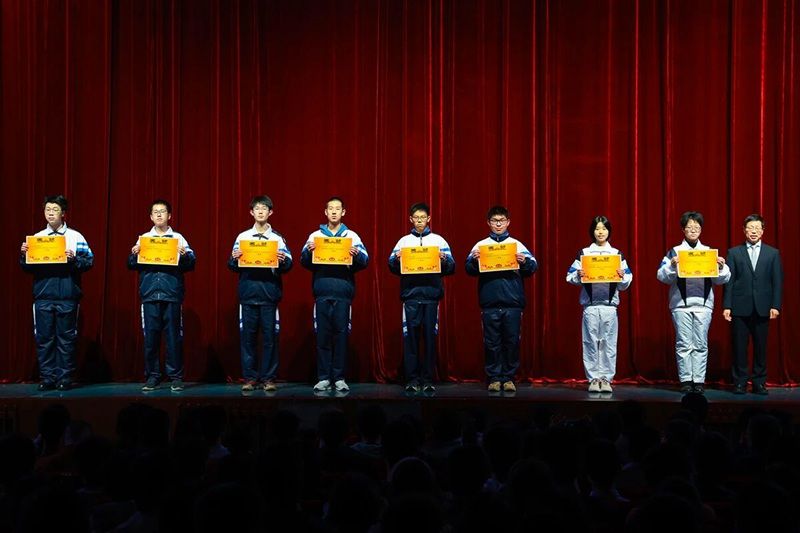 最令人期待的团体总分颁奖环节压轴登场,上海中学校长冯志刚登台宣布第四十二届艺术节团体总分前三名的班级,并为获奖班级代表颁奖,全场掌声雷动,共同见证团体荣耀。