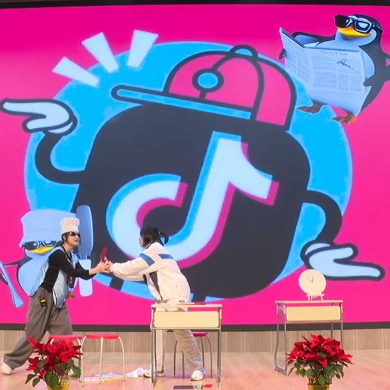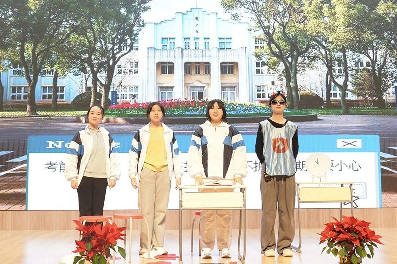 西区分会场内,高一(4)班带来特色创意小品《时间都去哪儿了》,将APP巧妙拟人化,围绕手机使用的日常展开趣味演绎。剧中精彩的台词精准戳中学子心声,引发全场共鸣。