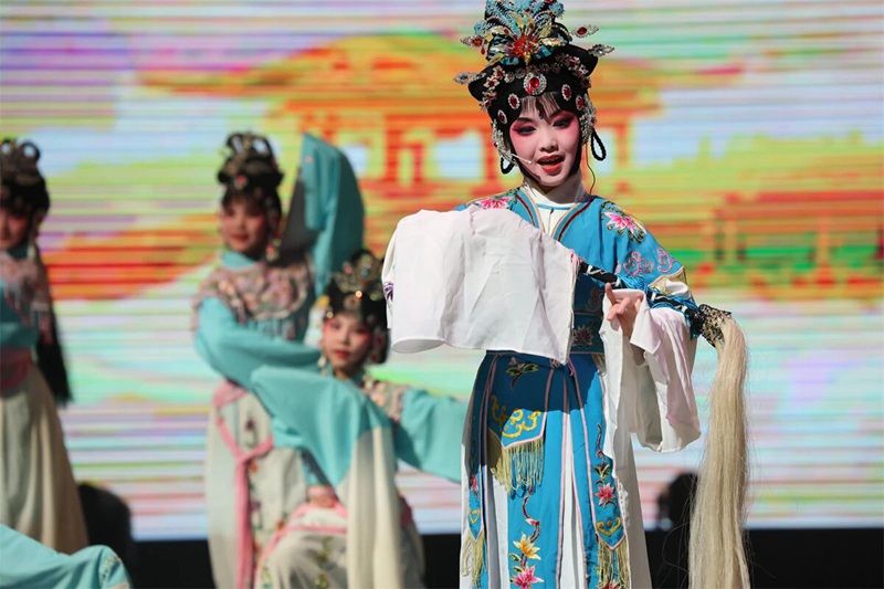 上汇实验学校的学子们带来昆曲少儿舞蹈特色节目《仙临瑞马踏新阶》。小舞者们执绸似云、跃动如蹄,将“天女赐福”的美好传说与“踏新阶”的昂扬姿态巧妙融合,创意十足。