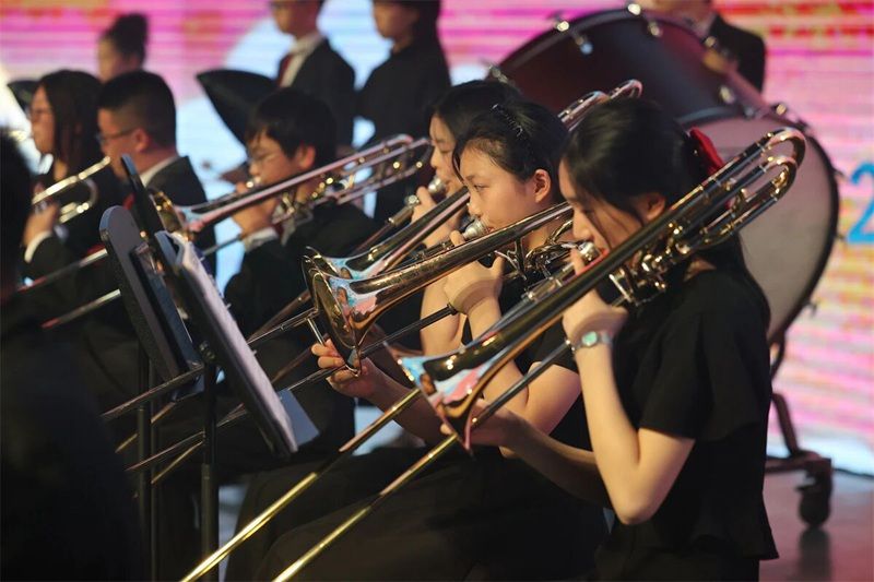 校管乐团率先登台,以一曲《梦想起航》拉开闭幕式的序幕。热情洋溢的旋律、明快有力的节奏,将青春梦想融入灵动音符,瞬间点燃全场氛围。