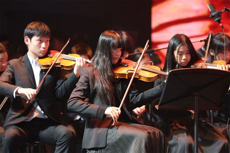 校弦乐团倾情演绎《黄河协奏曲》第四乐章《保卫黄河》,激昂澎湃的旋律再现母亲河的奔腾咆哮,慷慨激昂的曲调激荡着深沉的家国情怀。