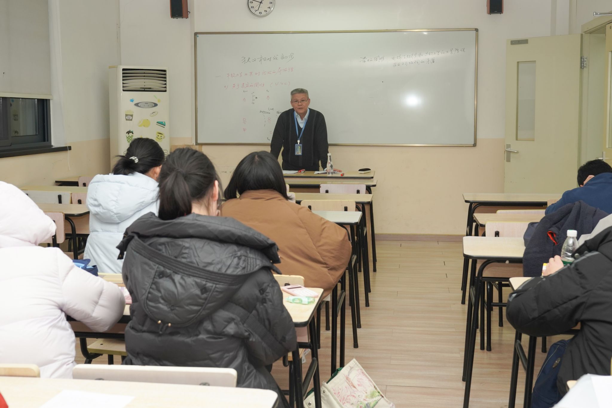 2026年1月4日,同学们同蒋老师于工程楼二楼进行了了最后一次物理微课学习。今天的主题是“狭义相对论初步”。