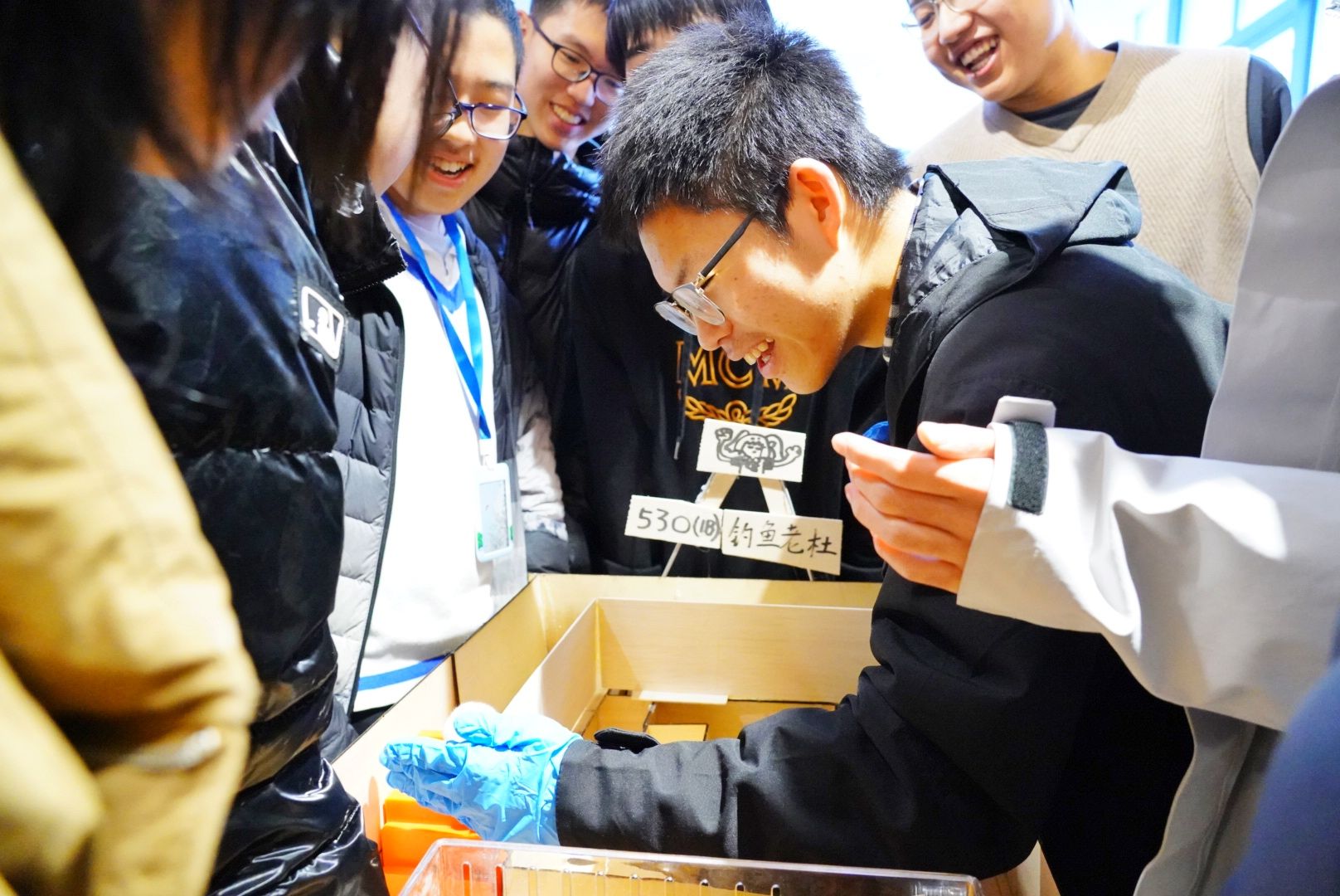 赛前,各团队认真调试设备。比赛开始后,围观同学时而屏息凝神,时而在仓鼠成功越过障碍后爆发出热烈欢呼。其中一组迷宫中的小仓鼠表现出色,以57秒的成绩创下本次比赛最佳纪录。