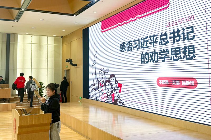 2026年1月9日,本学期第三次党课于甄陶楼报告厅展开。主讲人吴静怡老师以“感悟习近平总书记的劝学思想”为题,结合习近平总书记对学习的论述与其引用的文学典故,为同学们分析、归纳学习的价值、意义、内容和路径。