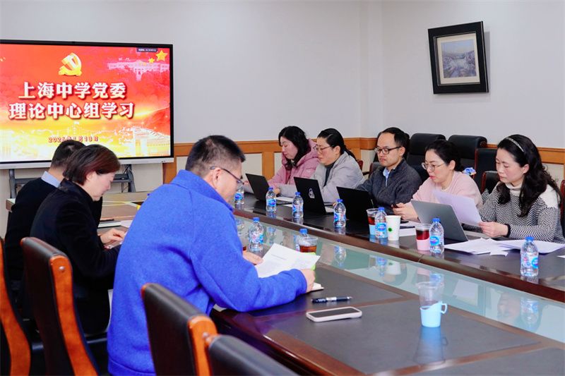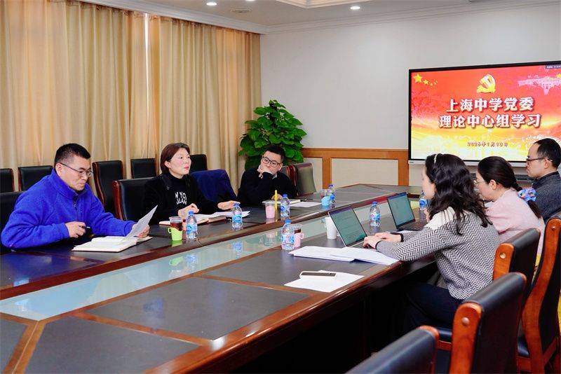 2026年1月13日上午,上海中学1月党委理论中心组学习于办公楼二楼会议室展开。党委书记张泽红、党委副书记樊新强及党委委员参会。党委副书记刘茂祥领读学习《习近平谈治国理政》第五卷中《新征程是充满光荣和梦想的远征》相关内容。