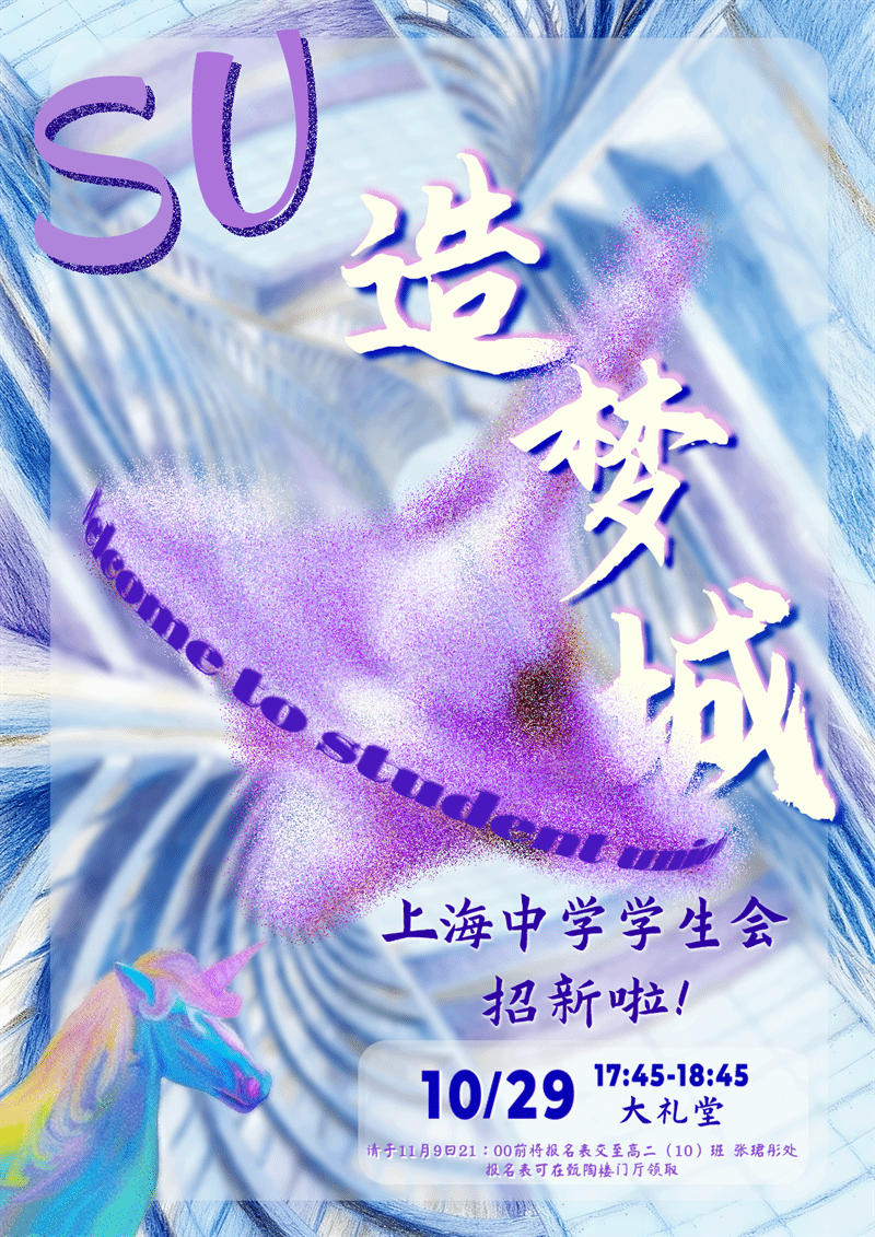 在SU,我们都是追梦的独角兽:希望为所有人造梦,奢望将身边的现实变成梦中的模样,期望着同学们的笑容,梦想活成大家梦中的模样……