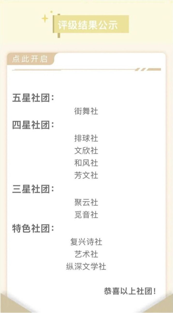 6月,社团评级拉开帷幕。在2024学年社团评级中,共有22个社团参与初选,在经历展示与面试之后,最终10个社团脱颖而出,荣获优秀社团。上中社团又书写了一年的成长篇章,在新的一年,站在新的起点,以热爱为帆,驶向更加精彩的未来!