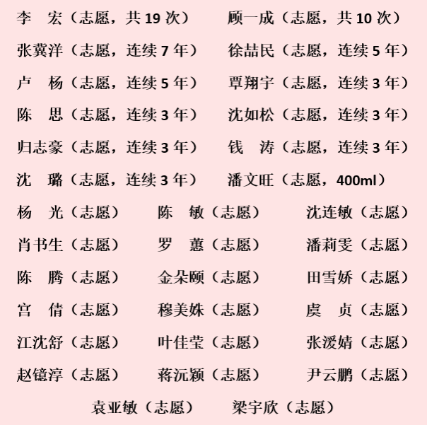 在下列教工志愿者爱心行动下,我校圆满完成了2026年无偿义务献血指标,他们是: