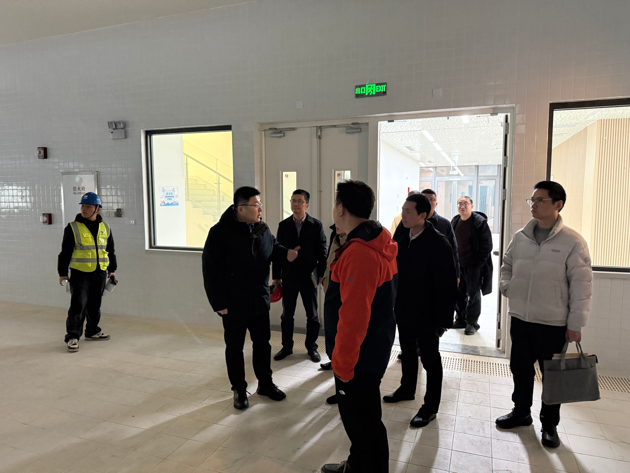 (王淳一行参观游泳馆)
