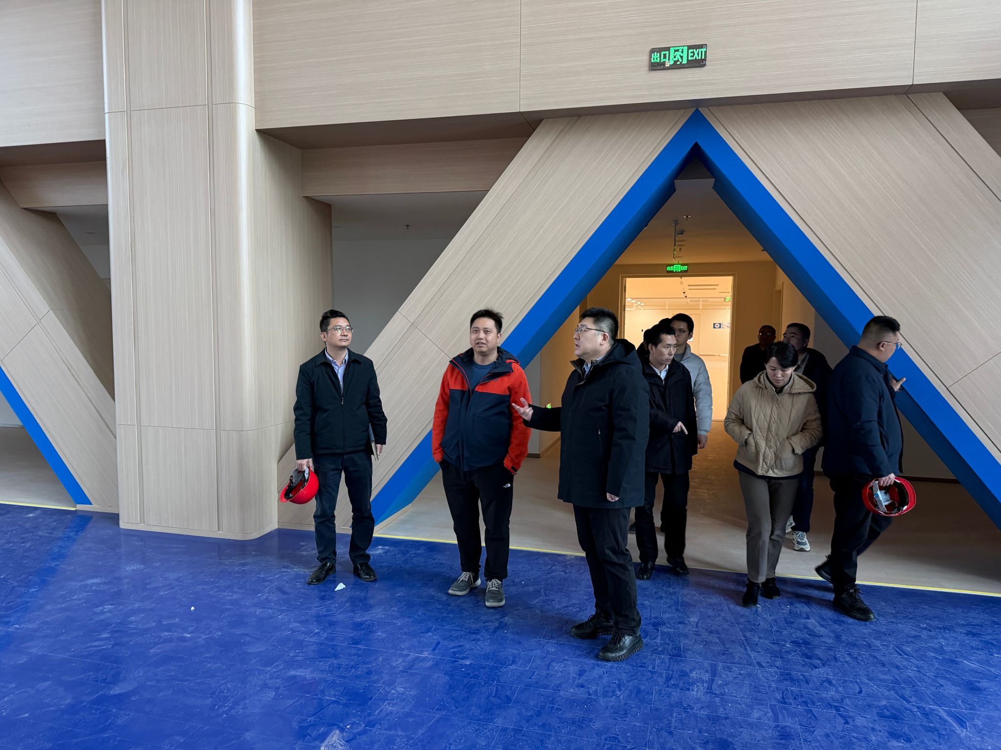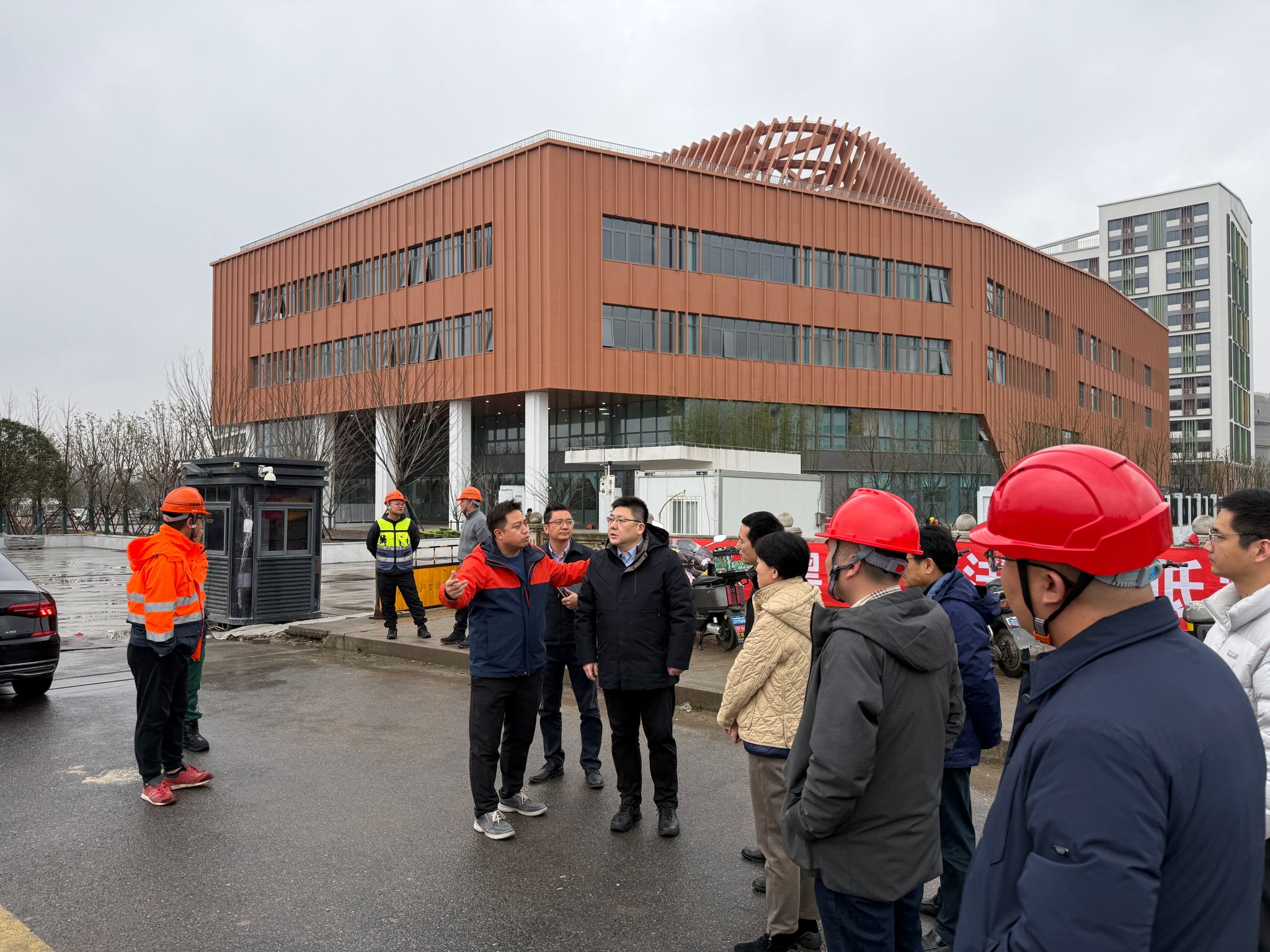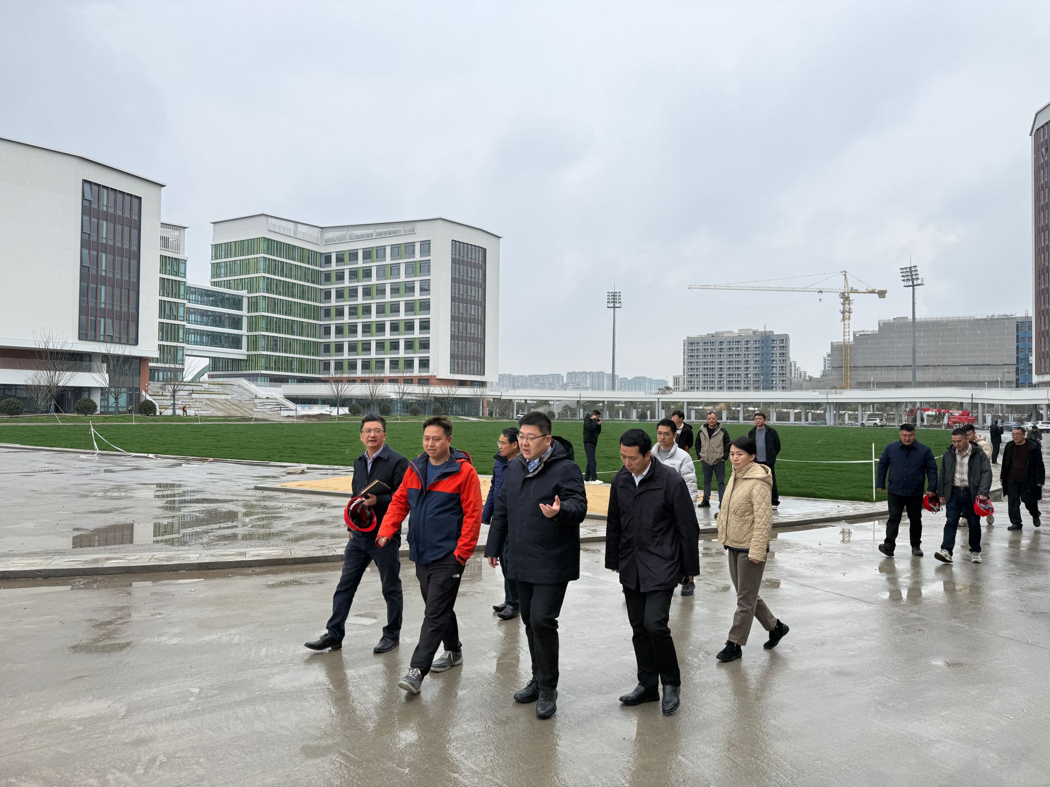 调研过程中,学校总务处主任朱观华老师详细汇报了项目整体复工进展、施工进度及后续投用筹备的关键节点。目前,项目正处于室外总体和绿化施工阶段,室内装饰装修已基本完成,即将进入精保洁阶段。