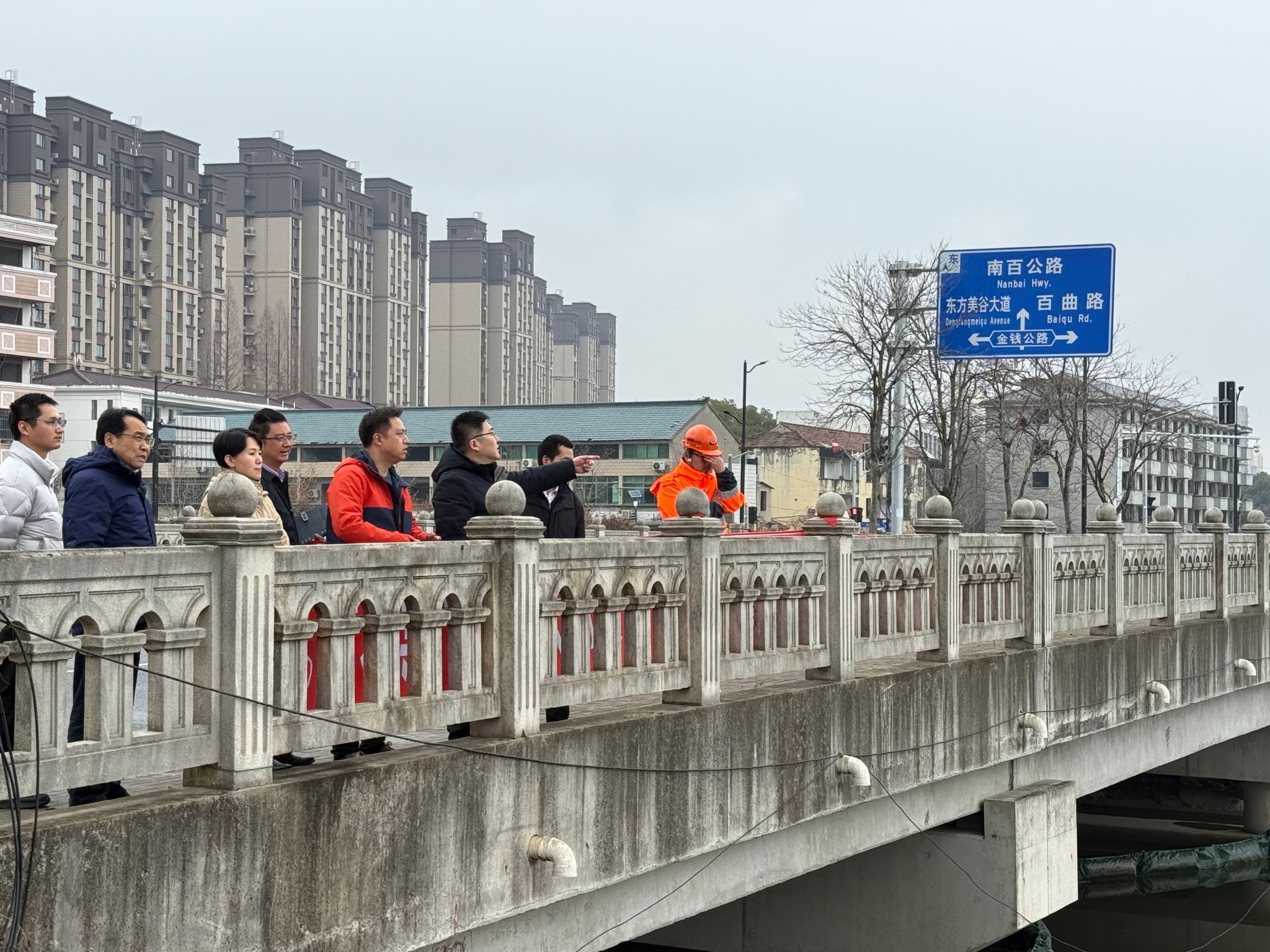 (金汇镇相关负责人介绍学校周边配套工程进展情况)