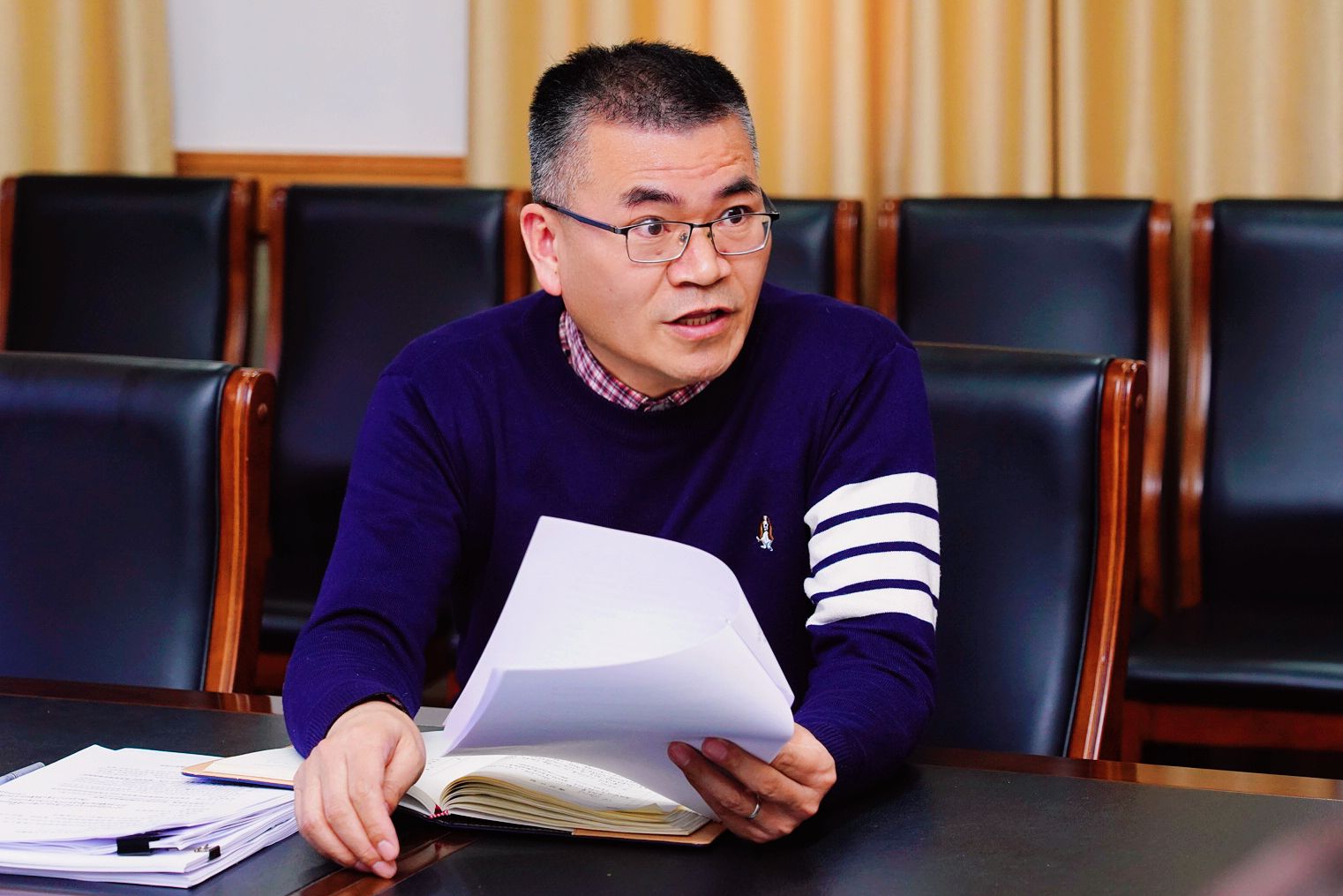 (党办主任、党委委员王莺讲解具体安排)