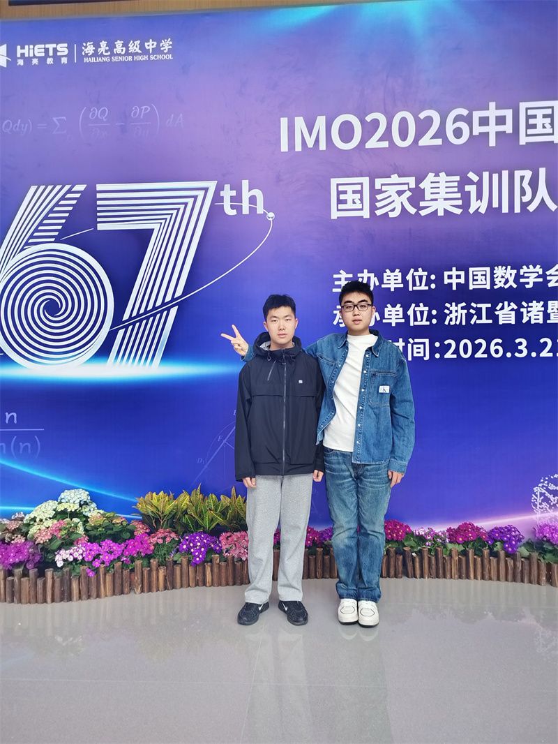 经过为期9天的集训和选拔,第67届国际数学奥林匹克(IMO)国家队6人名单在闭幕式上公布。我校邓乐言同学、张柏伦同学勇于拼搏,不断克服困难,顺利入选第67届IMO中国队。同时这是邓乐言同学在上一届IMO斩获满分金牌后,再度进入国家队。时隔三十六年,IMO重返中国。