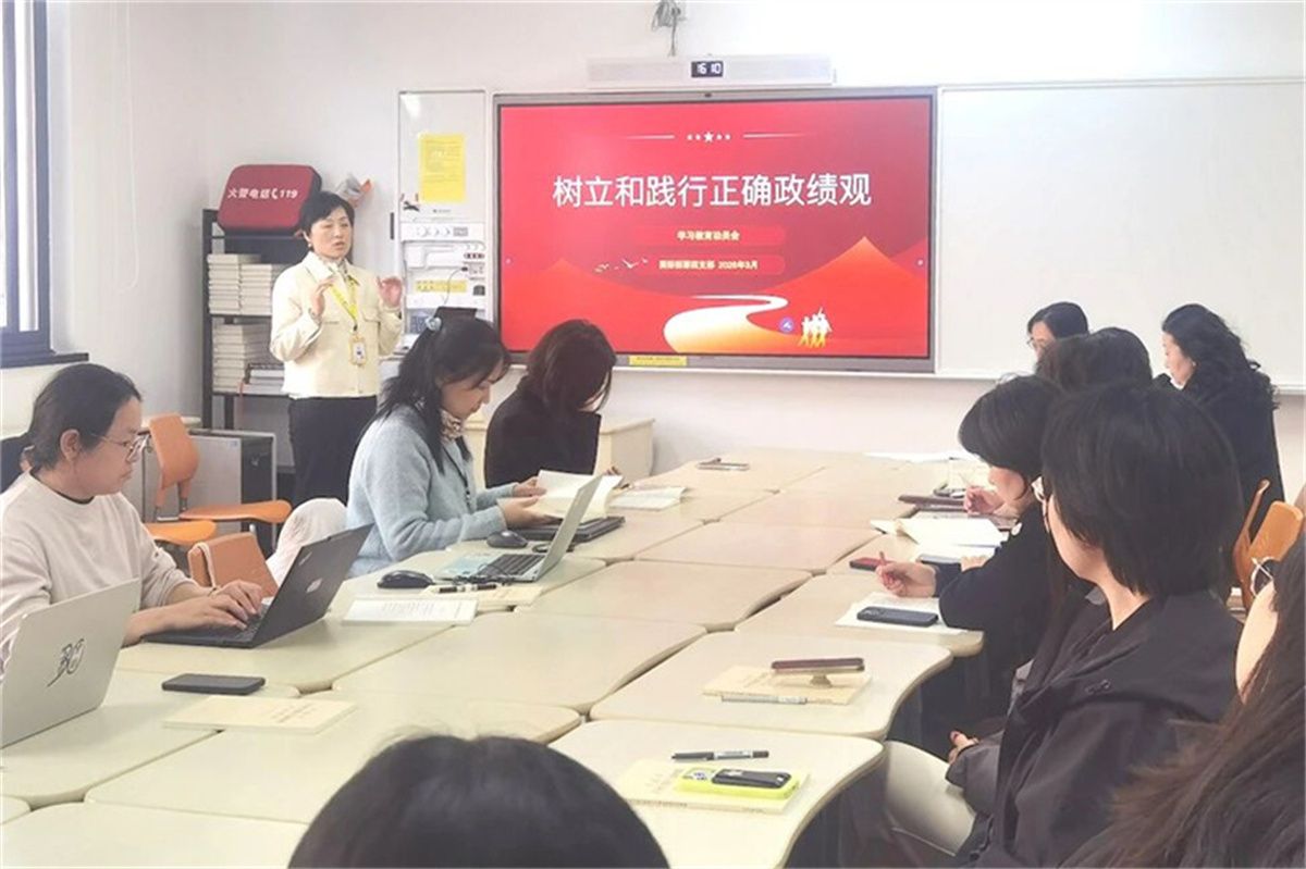 上下联动、全员参与,确保学习教育全覆盖。在学校党委的引领下,各基层党支部积极响应,迅速行动。本部第一、第二、第三支部,国际部第一、第二、第三、第四支部,上汇支部、音体美计支部、行政支部共计10个基层党支部,于本学期第二周内,全部完成树立和践行正确政绩观学习教育动员,实现了学习教育在基层党组织和党员中的全覆盖。各支部结合自身工作实际,明确支部学习计划,将学习教育与支部建设、岗位履职紧密结合,引导全体党员教师深刻领悟正确政绩观的时代意义,坚守教育初心,立足岗位担当作为,把师生满意、育人实效作为检验工作的重要标尺。