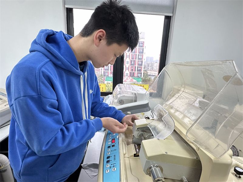 一组同学在工业技术学校开展“镜彩匠心”劳动体验,与眼视光与配镜专业的师生交流学习。在体验互动前,相关老师先为学生介绍了视光专业的就业方向、常见的视光疾病及其原理。接着同学们亲手体验了配镜和验光的基础内容。借助磨边机,同学们为自己亲手定制了一款时尚的太阳眼镜。操作过程中,老师不仅悉心指导,还对制作眼镜的不同过程以及从手工到自动化的转变细细介绍。除了手工制作之外,同学们还体验了电脑验光工具和在世界技能大赛上获奖的3D扫描试仪器。